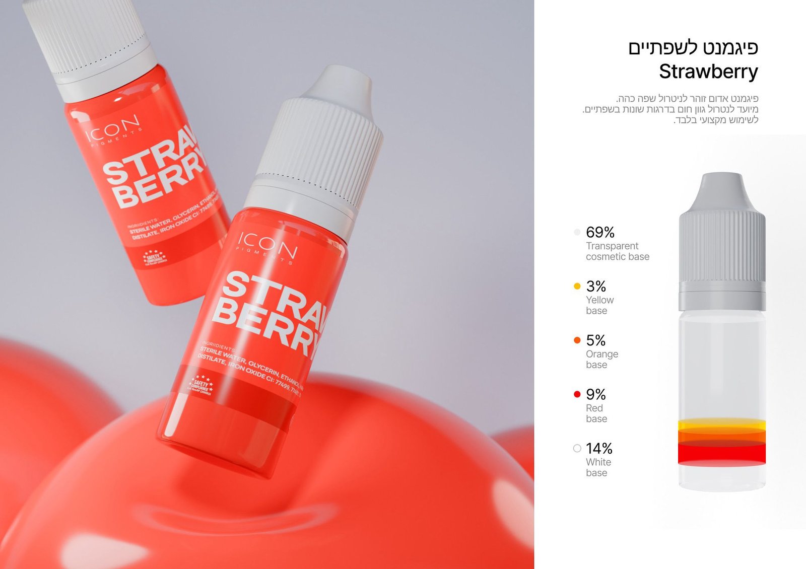 Set for the “Lipstick Technique” — the set includes three large 10 ml pigments from different collections: the shades Raspberry and Strawberry, known for their high coverage ability, which ensures
